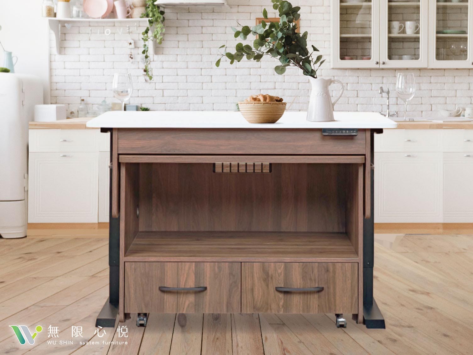 電動升降功能可以說是廚藝烘焙桌的主打特色之一,會設計升降功能就是因為下廚是大多數家庭的剛需,基本上下廚的空間就是在琉璃台、廚房中島桌、餐桌完成,每次下廚半小時跑不掉,一般弄個 4 菜 1 湯+飯後水果,也要將近 1 小時,汗流夾背就算了,還要忍受腰痛,但大多數人卻早已無視,認為這是理所當然,長期下來很容易造成瘠椎、體態問題,其實下廚不一定要彎腰駝背,無心看到太多下廚的痛苦,才設計這款有電動升降功能的廚藝桌,雖然它並不能解決所有下廚的流程,但它可以確保只要是能在廚藝桌上面準備的食材,在使用廚藝桌的期間內,調到最適合自己的高度,你就不會彎腰駝背,對身體的負擔降到最低。